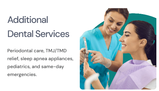 Veneers, Invisalign, implants, bonding, and ZOOM® whitening—delivered with comfort and modern technology.